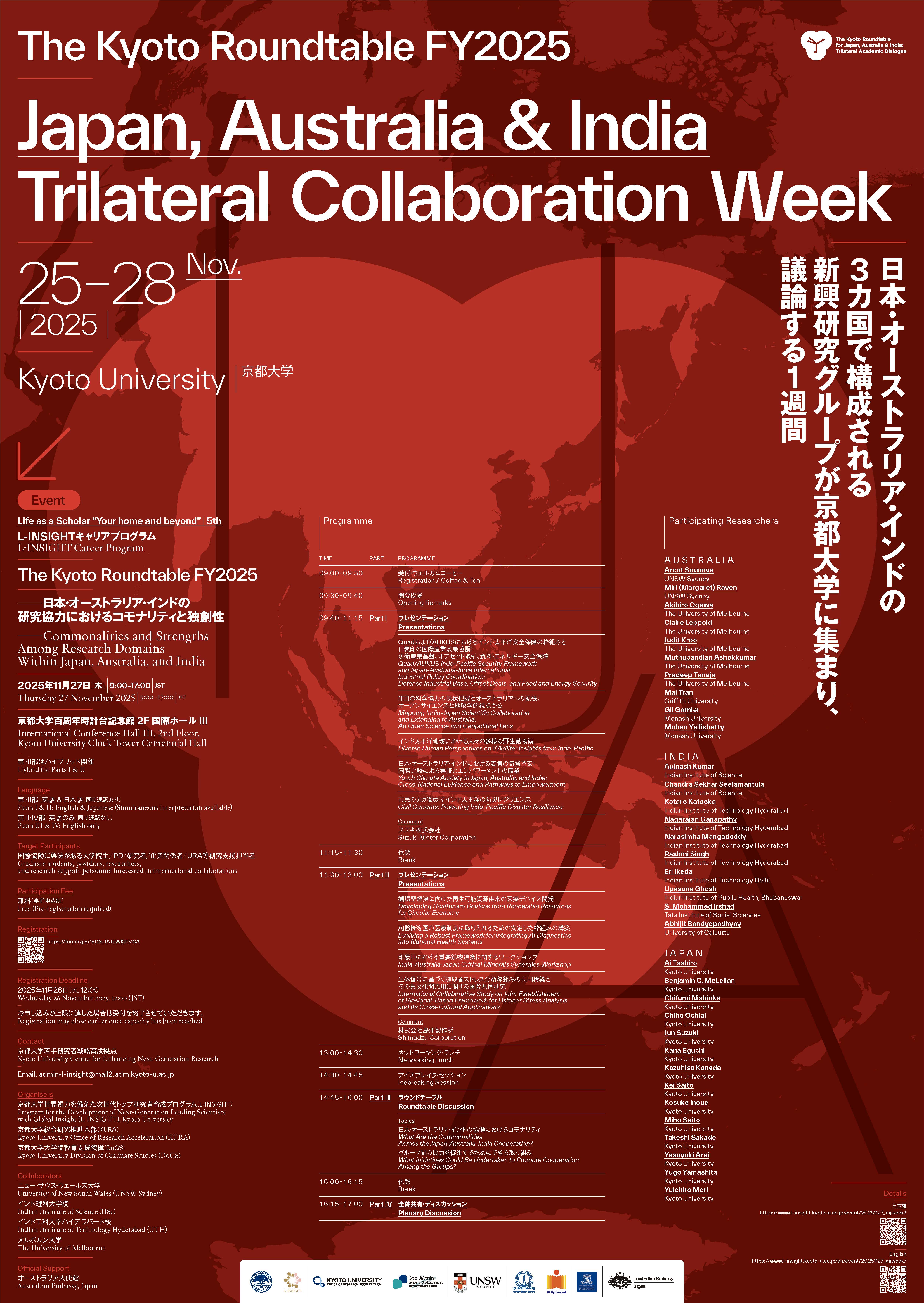 The Kyoto Roundtable FY2025—日本・オーストラリア・インドの研究協力におけるコモナリティと独創性